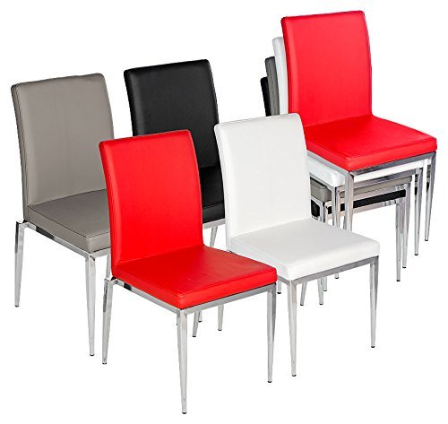 PRODUCT DESCRIPTIONS:The Alberta Dining Chair is a fantastic little dining chair, available in a range of colours and is stack-able for easy storage. Upholstered in a leather like PU in black, gun metal grey, white and red and supported by a sturdy chrome frame.