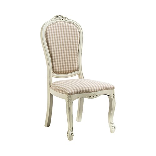 PRODUCT DESCRIPTIONS:Combining the French renaissance and the Victorian period, the Boudoir range will add a touch of chic and grandeur to your home. The beautifully styled Boudoir chair is made from solid wood and given a distressed cream finish that gives it an antiquated look that won't date. The frame of the chair gently contours creating an elegant style that is accentuated by decorative detail giving the chair its look of splendour. Durable and sturdy, the frame has a padded seat and back that are upholstered in neutral gingham adding to the chic of the chair. Soft padding ensures comfort when you take a seat. A beautiful, decorative feature in your room or as an everyday seat, the Boudoir chair will bring a stately feel to your bedroom, dining room or living area.