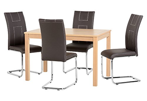 PRODUCT DESCRIPTIONS:Product Features: Chairs in Brown Colour with Oak Coloured Table Oakmere Dining Set with A2 Chairs NaturalOak Veneer Finishes Silve Chrome Chair Legs Top Quality Product Beautifully Designed Dining Set Free Quick Nationwide Delivery