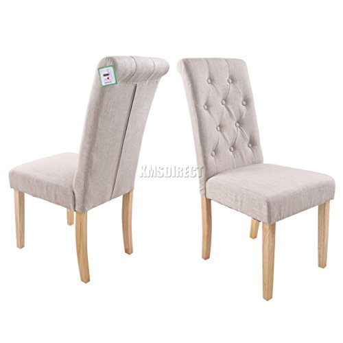 Great Buy FoxHunter Furniture Set of 8 Premium Cream Linen Fabric Dining Chairs Roll Top Scroll High Back with Solid Wood Legs Seat Contemporary Modern Look DCF02 Living Room Lounge Office - 10 Cheap Products That Make Life Easier