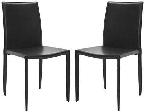 PRODUCT DESCRIPTIONS:The minimalist aesthetic of this dining chair (sold in a set of two) suits decorating tastes both transitional and contemporary. Upholstered with easy-care black bonded leather, these chairs are made withstand wear and tear from demanding guests while exuding Euro-chic style.