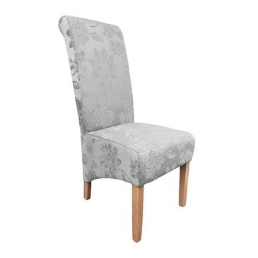 PRODUCT DESCRIPTIONS:The krista chair is the cornerstone of our dining chair range and we are proud to offer in a new floral, leafy jacquard print. The krista fleur is available in a wide selection of attractive colourways all with a vintage look and feel - antique grey, cream, duck egg blue, mushroom, red and sage. Each chair has a sprung and belted seat area for additional comfort and to retain bounce and shape. The solid frame and elegant oak legs complete the look to create a timeless and versatile piece. Supplied fully assembled in sets of 2.