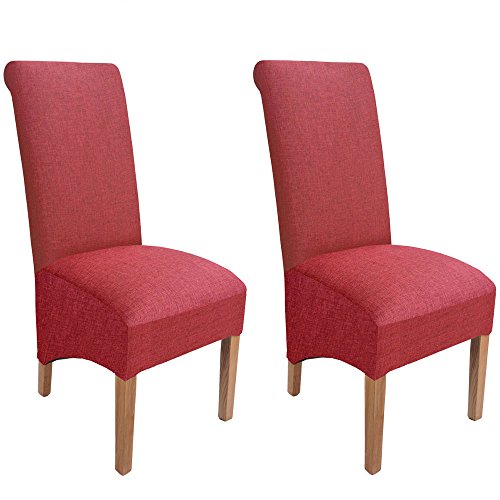 PRODUCT DESCRIPTIONS:Stunning New Product With A Modern Stylish Design, The Home Discount Offers This Stunning New Product With A Modern Stylish Design, The Shankar Krista Rio Red Dining Chair Set Of 2. A Fashionable Roll Back Chair In A Fabulous Linen Look Fabric In 5 Inspiring Colours. Duck Egg Blue, Natural, Ochre, Red And Teal. Each Chair Has A Sprung And Belted Seat Area For Additional Comfort And To Retain Bounce And Shape. The Solid Frame And Elegant Oak Legs Complete The Look To Create A Timeless And Versatile Piece. This Product Is Supplied Fully Assembled In Sets Of 2. The Dimensions For This Chair Is H 105 X W 47 X D 67 Cm Approx.