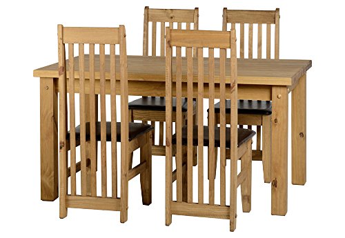 PRODUCT DESCRIPTIONS:Product Features: Dining Set in Brown Colour Tortilla Dining Set with Four Chairs Distressed Waxed Pine Finishes Brown or Cream Coloured Padded Seat Top Quality Product Beautifully Designed Dining Set Free Quick Nationwide Delivery