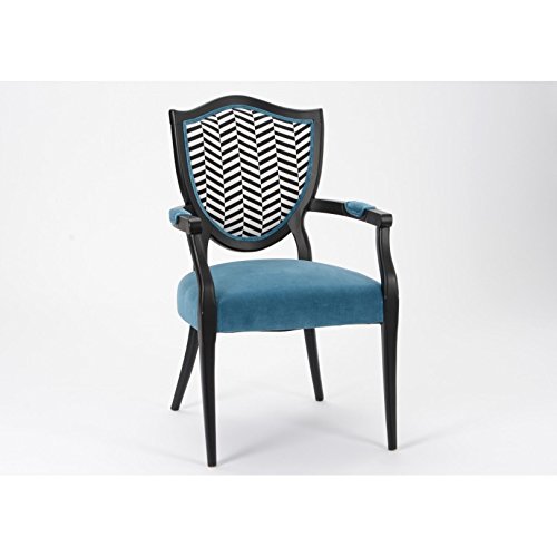 Inspired by the art deco style this chair contemporary turquoise blue velvet and fur, black and white with a shield will give an original and modern touch to your dining room around the table for a more modern style clear glass or wooden painted black for a chic.