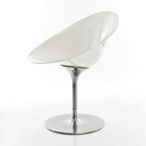 PRODUCT DESCRIPTIONS:Kartell Ero/S/ Swivel Chair. This item has been created by designer Philippe Starck for the label Kartell. Super trendy egg-shaped swivel chair with base made of die-cast aluminum. Transparent seat with interesting light effects. Ero/S/ is a perfect armchair for dining and living rooms as well as offices, waiting and meeting rooms.Also available with Eiffeltower-support and with wheels. Quick delivery.
