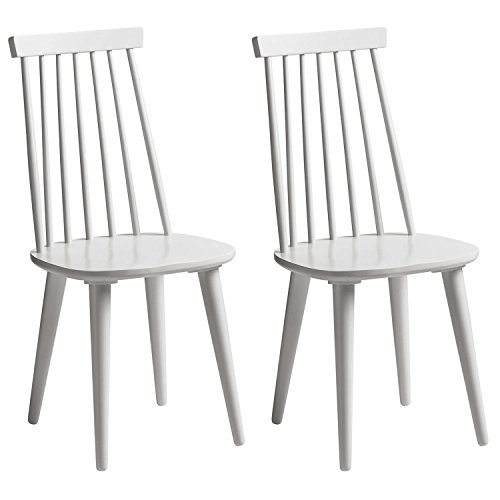 PRODUCT DESCRIPTIONS:Surround your table with the Vermont herning chair and enjoy comfort and style in your room. The traditional farmhouse design is made from strong and reliable rubberwood, and features a white finish to complement most decors. The curved back rest, with vertical bars, will give your back total support for a more comfortable dining experience and stylish look, while the legs angle outwards guaranteeing a sturdier chair. The good looks of the chair make it ideal for use as a decorative feature and occasional chair in your living space or bedroom. A wonderful addition in your home, the charming Vermont herning chair is ideal for everyday use. 2 Pieces.