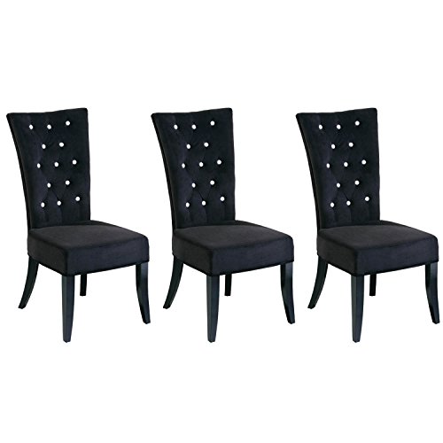 Premier Housewares 3 Piece Radiance Black Velvet Breakfast Kitchen Dining Room Chair