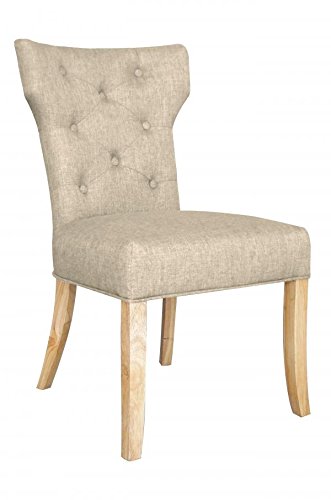 PRODUCT DESCRIPTIONS:This seattle chair features a subtle wing back design and statement upholstery with attractive button detailing to create a feeling of opulence within the home. Upholstered in a choice of 4 statement colours: Red, Teal, Natural and Ochre. Solid wood construction with elegant rubberwood legs. Each chair has a sprung and belted seat area for additional comfort and to retain bounce and shape. Supplied Fully Assembled in sets of two.