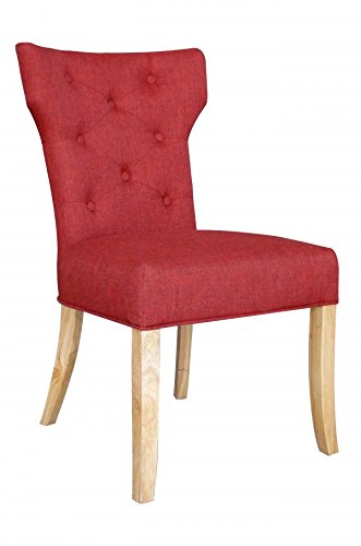 PRODUCT DESCRIPTIONS:This grand chair features a subtle wing back design and statement upholstery with attractive button detailing to create a feeling of opulence within the home. Upholstered in a choice of 4 statement colours: Red, Teal, Natural and Ochre. Solid wood construction with elegant rubberwood legs. Each chair has a sprung and belted seat area for additional comfort and to retain bounce and shape. Supplied Fully Assembled in sets of two.