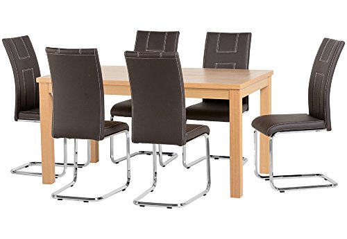 PRODUCT DESCRIPTIONS:Product Features: Dining Set in Brown Colour with Oak Coloured Table Oak Veneer Finishes Chromed Steel Chair Legs Top Quality Product Beautifully Designed Dining Set Free Quick Nationwide Delivery