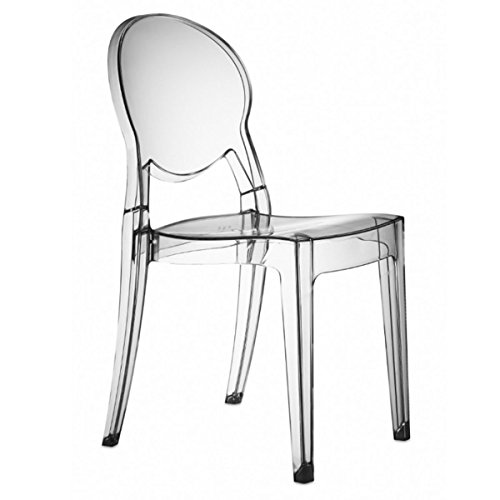 PRODUCT DESCRIPTIONS:Chair made from recyclable polycarbonate. Design Luisa Battaglia. Available in the following colours: Clear, Transparent smoky-grey, transparent red, black, grey, dove grey and white (Select from drop down menu above). The colour: Transparent and White are also available as a fire-resistant version (Select from drop down menu above). Beautiful light effects thanks to the transparent structure. Stackable. Can be used both indoors and outdoors.
