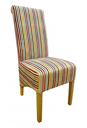 PRODUCT DESCRIPTIONS:Back by high demand are these stunning rolled back chairs. With an added twist on the chair we have designed it with bold stripes, check and plain chairs so that there is a chair for every customer. Each chair has a sprung and belted seat area for additional comfort and to retain bounce and shape. You can have this unique piece of furniture in your home for the price shown, the next day.