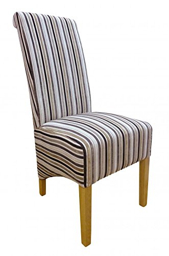 PRODUCT DESCRIPTIONS:Back by high demand are these stunning rolled back chairs. With an added twist on the chair we have designed it with bold stripes, check and plain chairs so that there is a chair for every customer. Each chair has a sprung and belted seat area for additional comfort and to retain bounce and shape. You can have this unique piece of furniture in your home for the price shown, the next day.