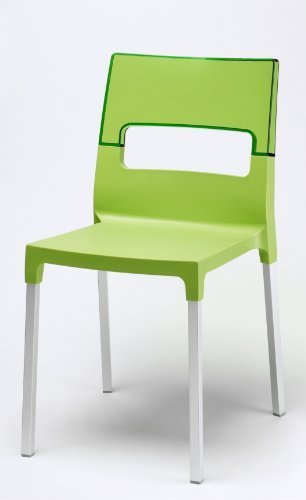 PRODUCT DESCRIPTIONS:Chair With Polycarbonate Transparent Green Back, Seat In Polypropylene Reinforced With Fiberglass Pistachio Green. Anodized Aluminum Legs. H.Seat: 46 Cm